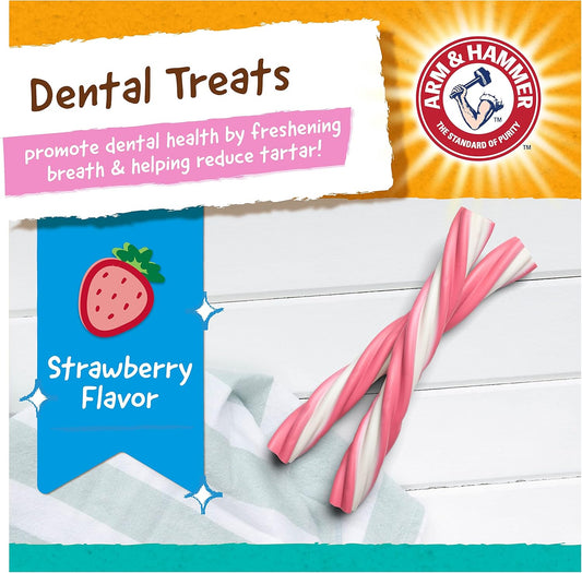 Fruit Twisters Fresh Breath Dental Treats for Dogs in Fruity Strawberry Flavor | 57 Ct Value Bucket Baking Soda Dog Treats for Dental Health (Pack of 1, 57 Count Total)