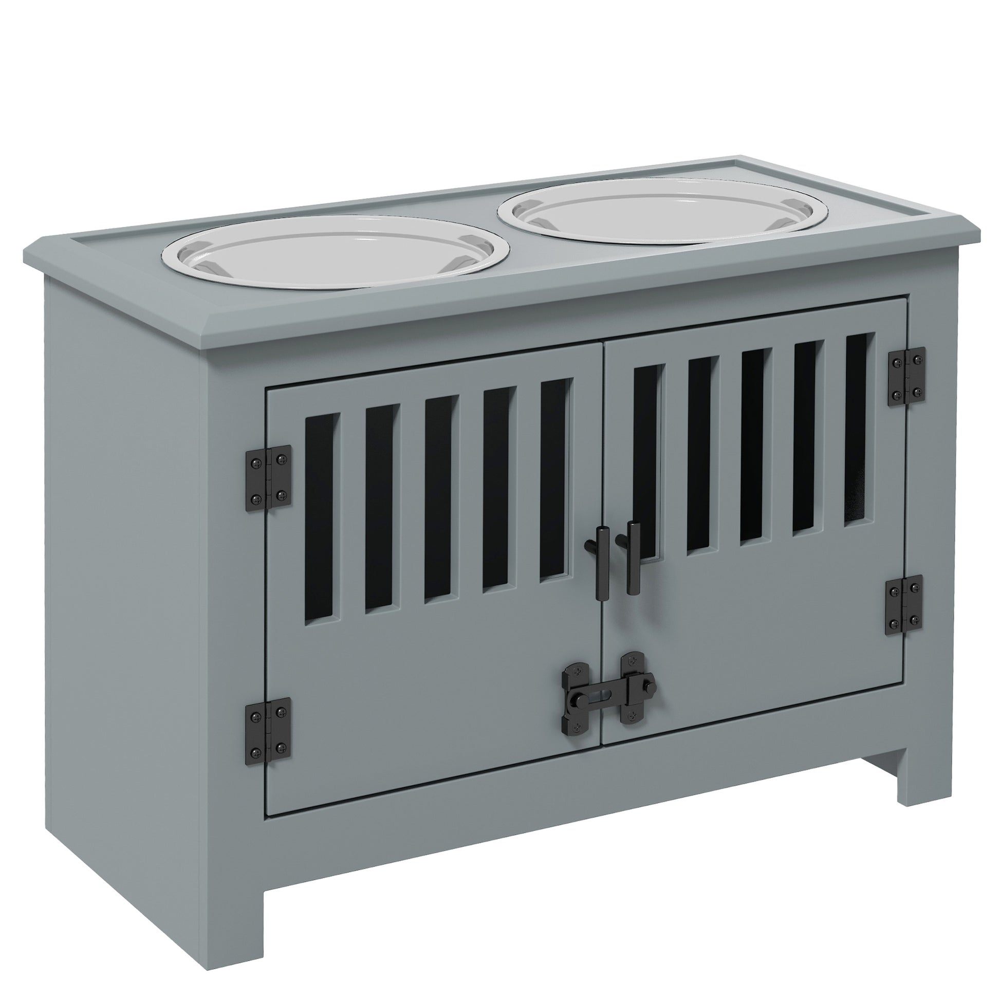 PawHut Raised Dog Bowls, Pet Feeding Station, With Storage, Food And Water Bowls, For Large Dogs - Grey